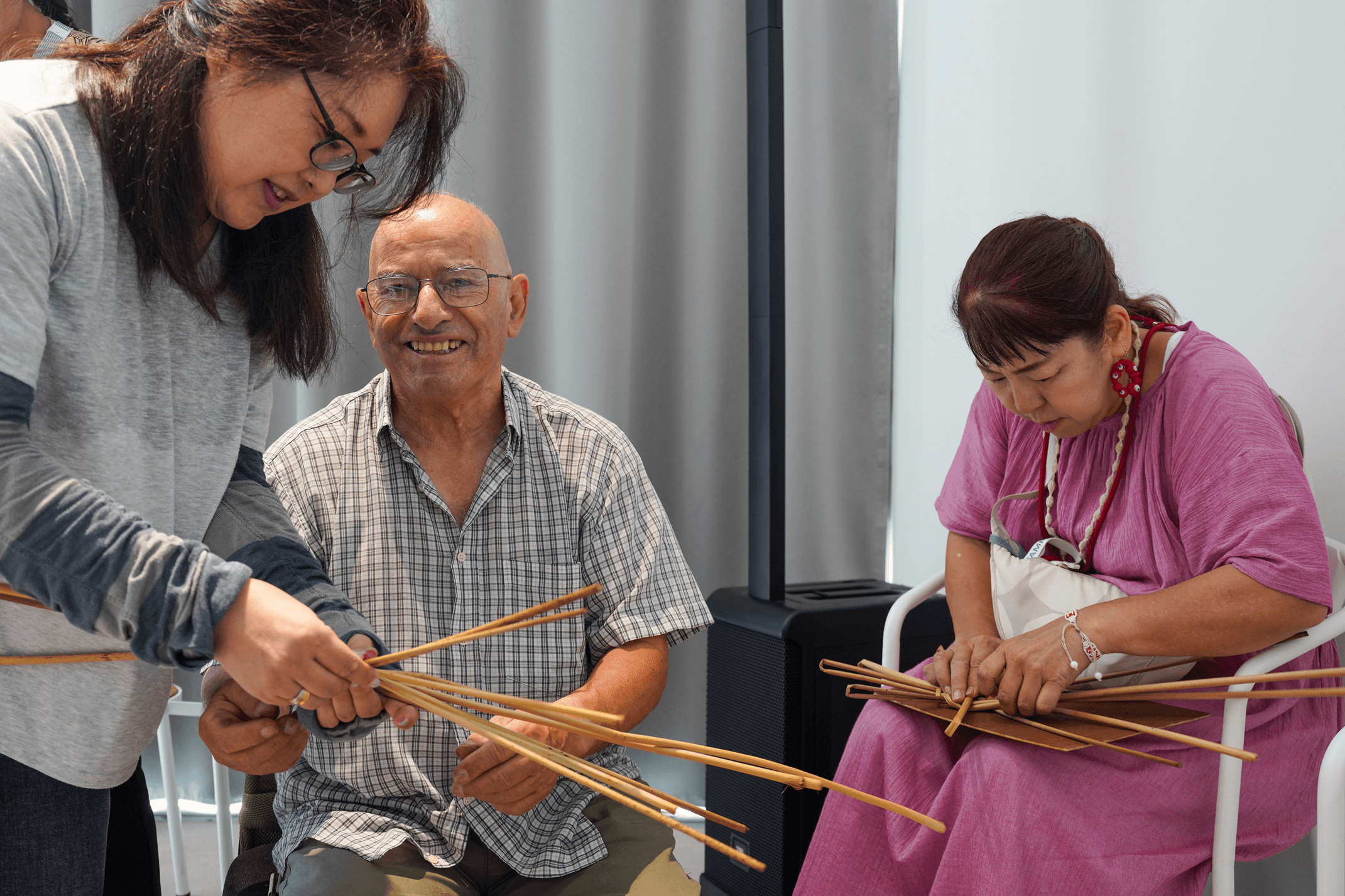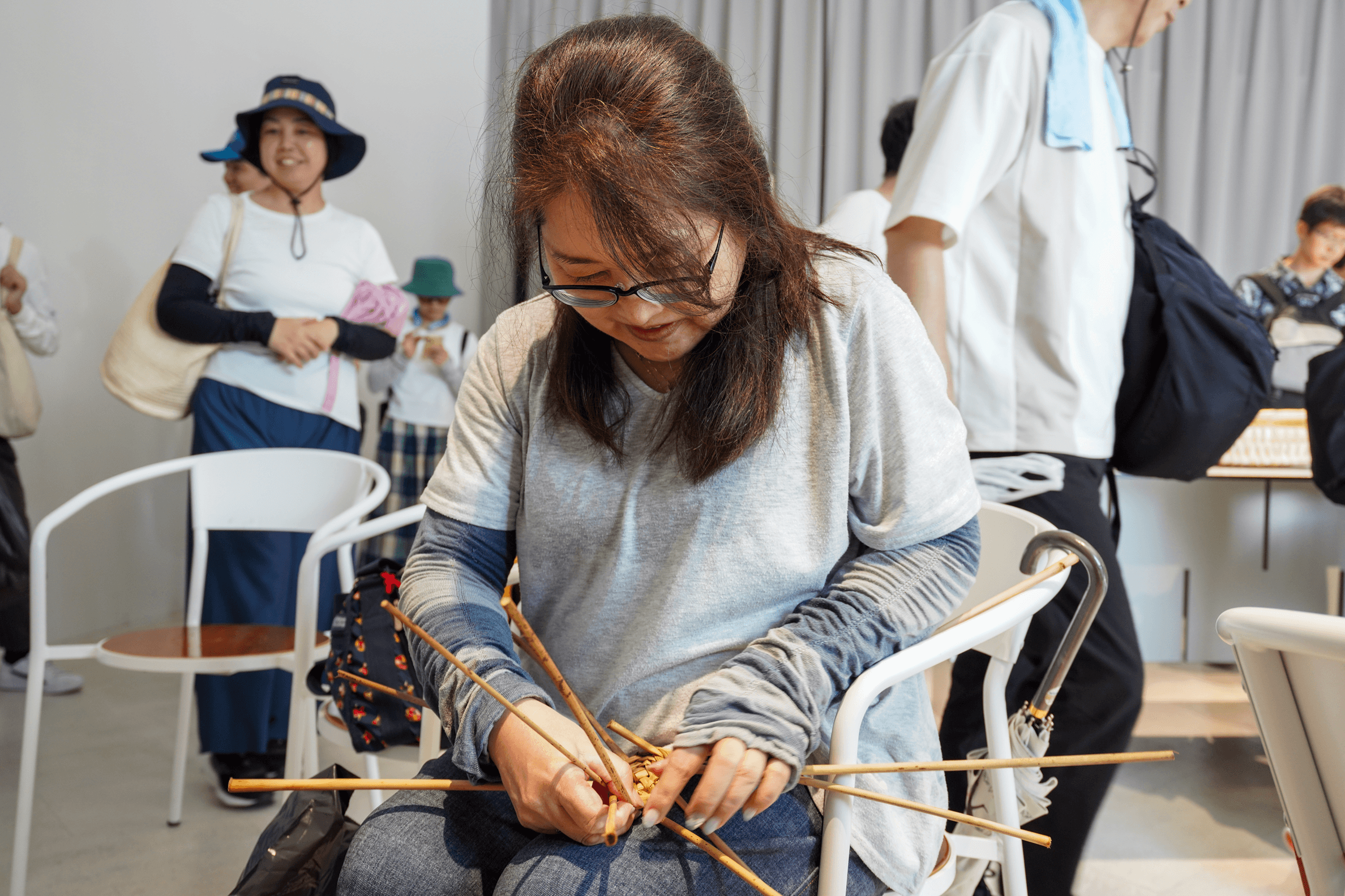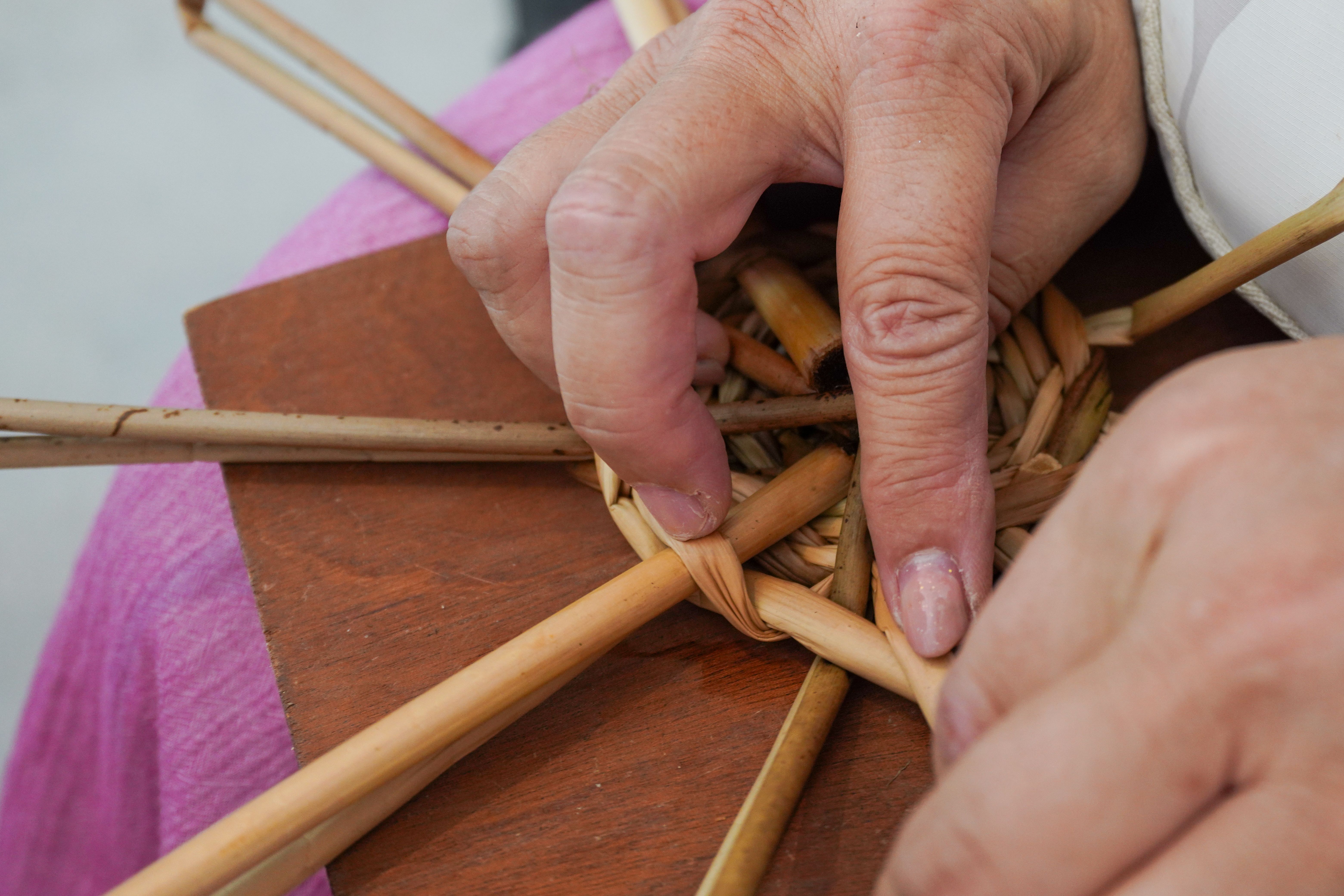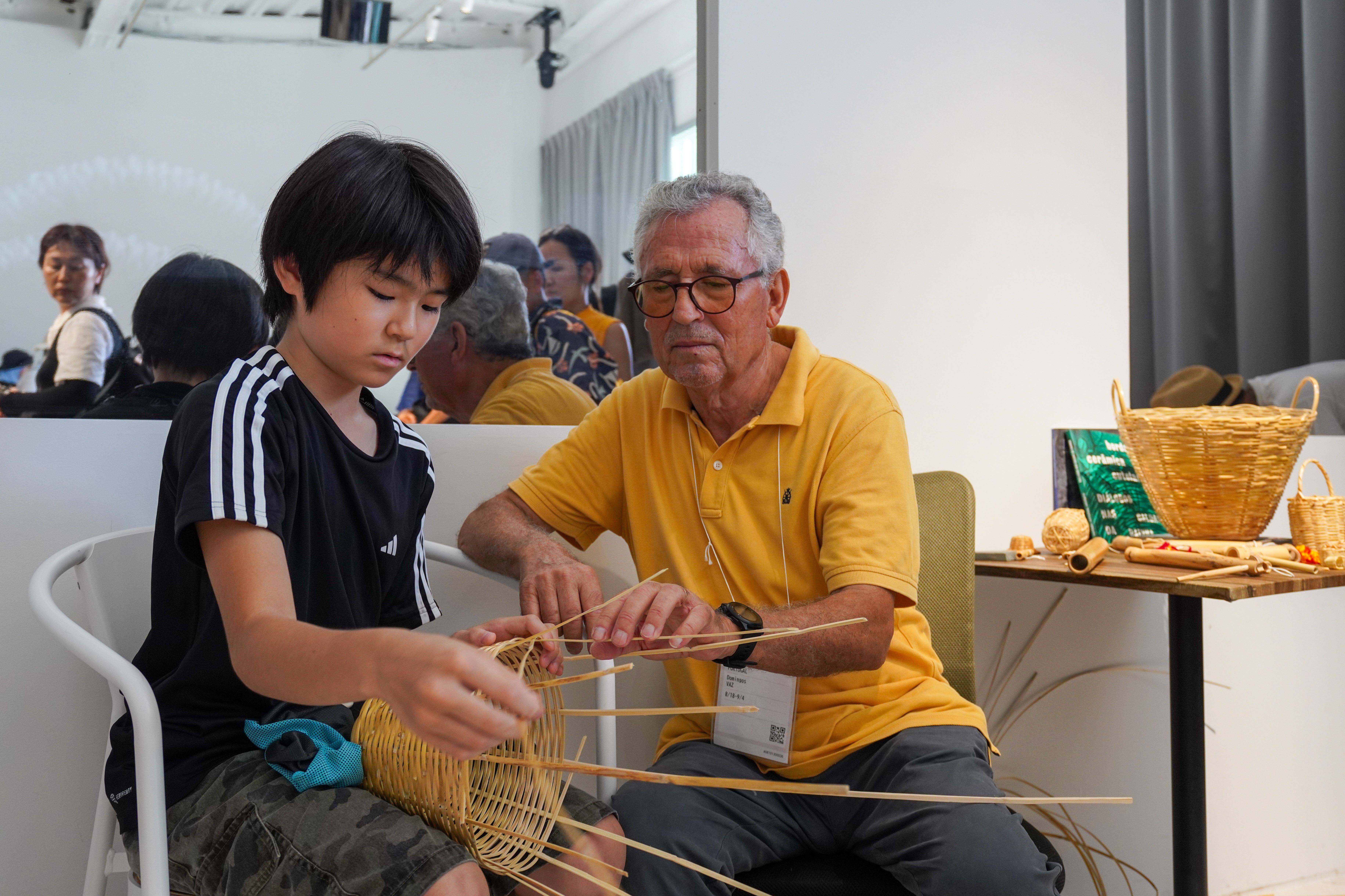 De 23 a 28 de agosto, com sessões às 11h00–12h30 e 15h00–16h30, os artesãos Manuel Ferreira (mobiliário de bunho) e Domingos Vaz (cestaria de cana) orientaram oficinas práticas de experimentação em torno de técnicas tradicionais com materiais sustentáveis.